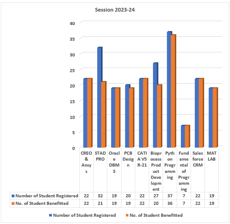 The Institute provides the value-added courses for the students in the third year of their curriculum apart from the regular curriculum of the affiliated university. These courses are selected based on the demand from the industries. Faculty from the various departments of the Institute is first trained in the industry and then they conduct this skill development courses. The lists of such courses conducted under the skill development cell of the Institute are as listed below:
